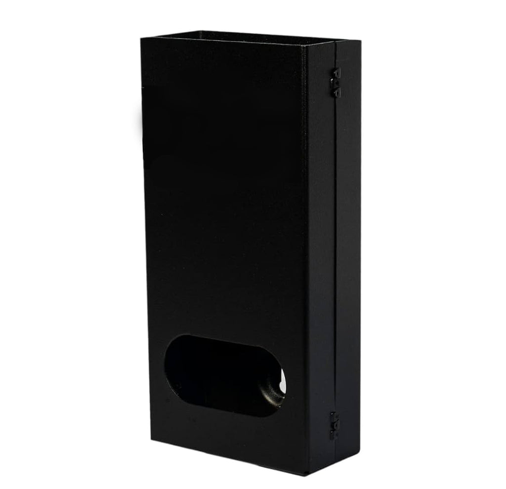 Black metal dispenser measuring 11" x 5" x 3", designed for spas and gyms.